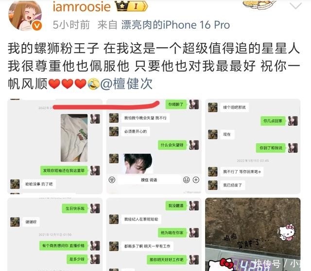与檀健次的聊天记录则显示其私下语气亲昵,会使用自己的表情包,甚至提及有衣物遗留在对方处,打破了其荧幕前的部分形象设定。