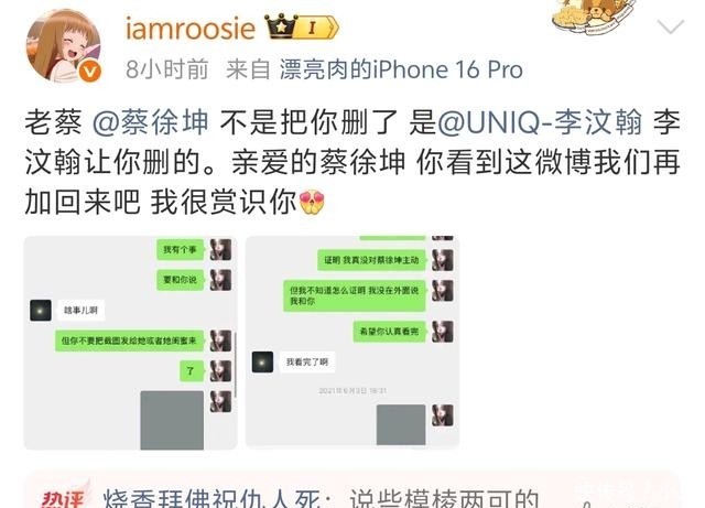 为了让这些话有信服度,司晓迪就直接控诉李汶翰同时交往两个女友,和多人搞暧昧,还公开了疑似二人的兜风照片以及聊天记录。