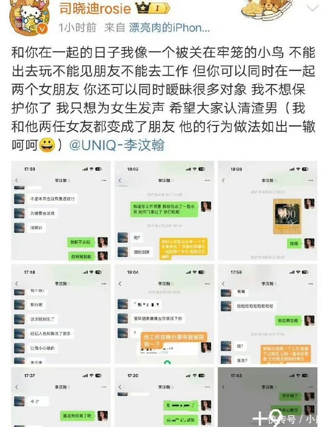 原以为这件事情过去了之后,司晓迪也不再继续爆料,但没过多久她就再次出来开撕李汶翰,称他在与自己交往期间出轨。